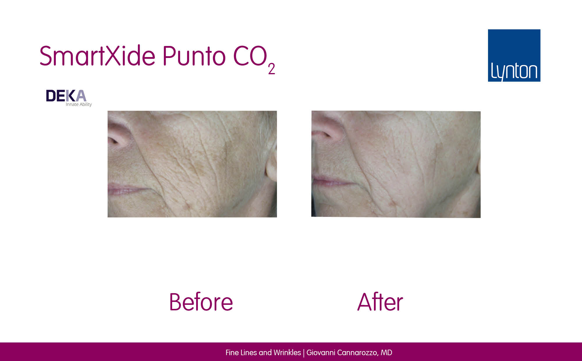 - Superficial and deeper wrinkles.